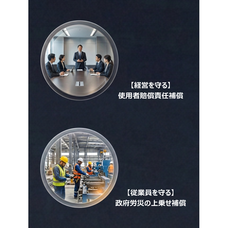 傷害保険と使用者賠償責任保険がセットになった商品で、役員・従業員が就業中や通勤途中にケガをした場合の死亡・後遺障害・入通院費用などを補償します。